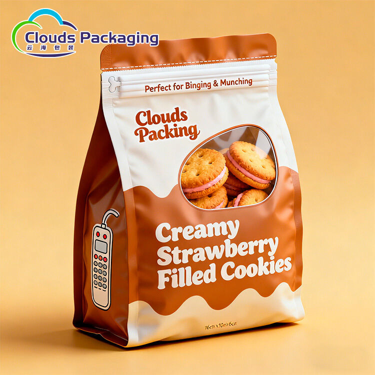 Custom Printing Sandwish Cookies Zip Lock Pacakaging Bags Plastic Square Bottom Package Pouch