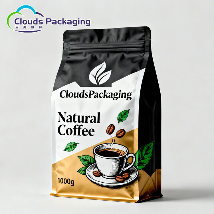 Customized Square Bottom Stand Up Coffee Bags With Valve and Zip Closure 1