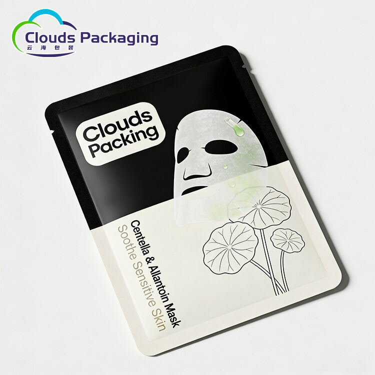 Custom Logo Printed Three Side Seal Bag Tearable Facial Mask Packaging Pouch